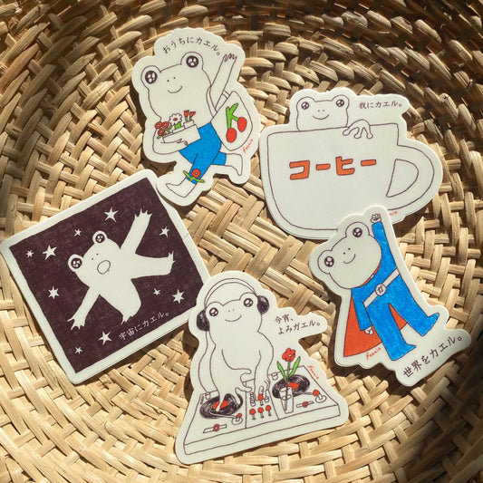 Happy Frog Sticker Set (5 Waterproof Stickers)