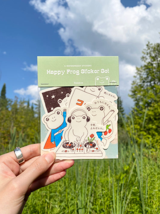 Happy Frog Sticker Set (5 Waterproof Stickers)