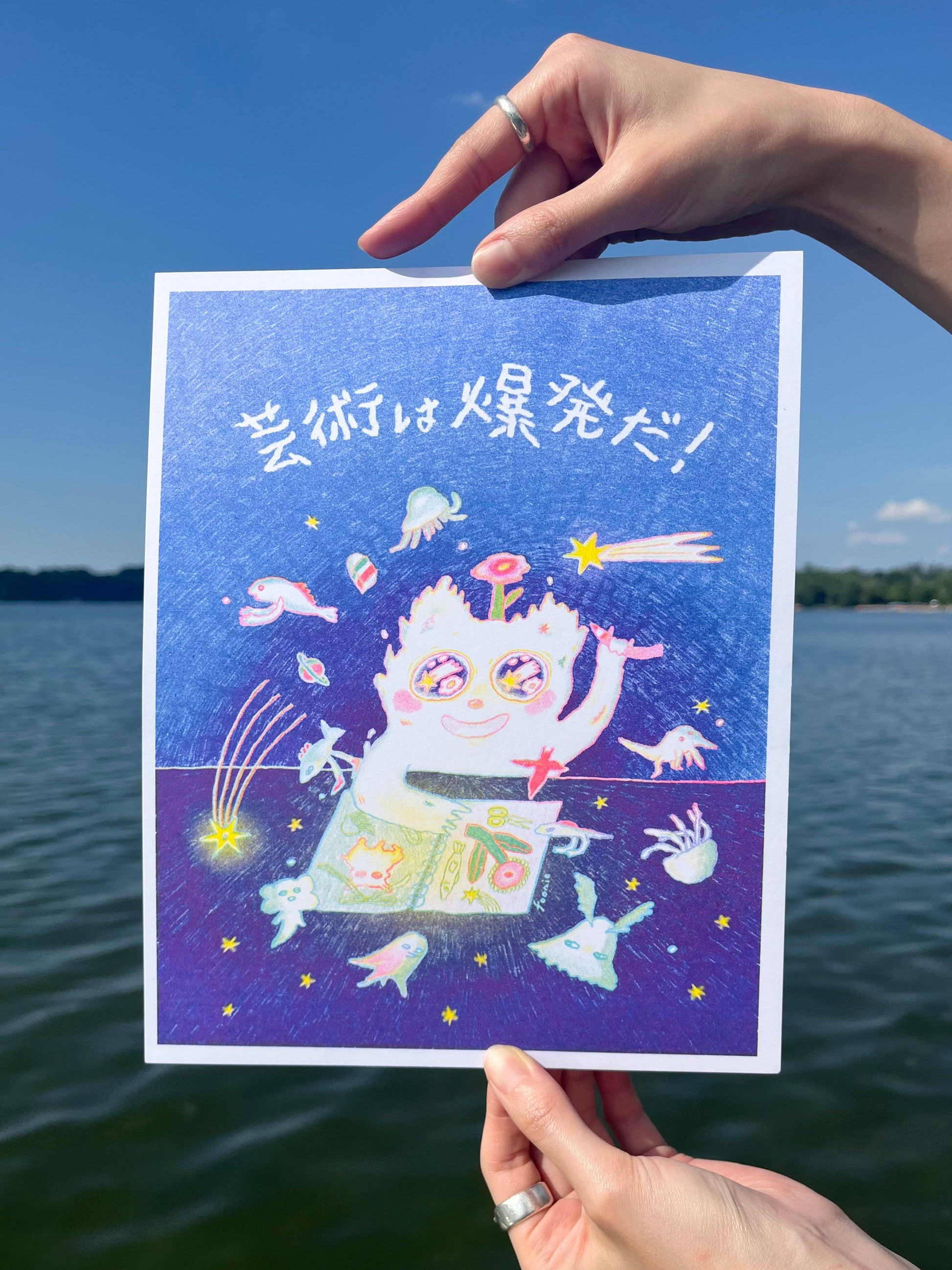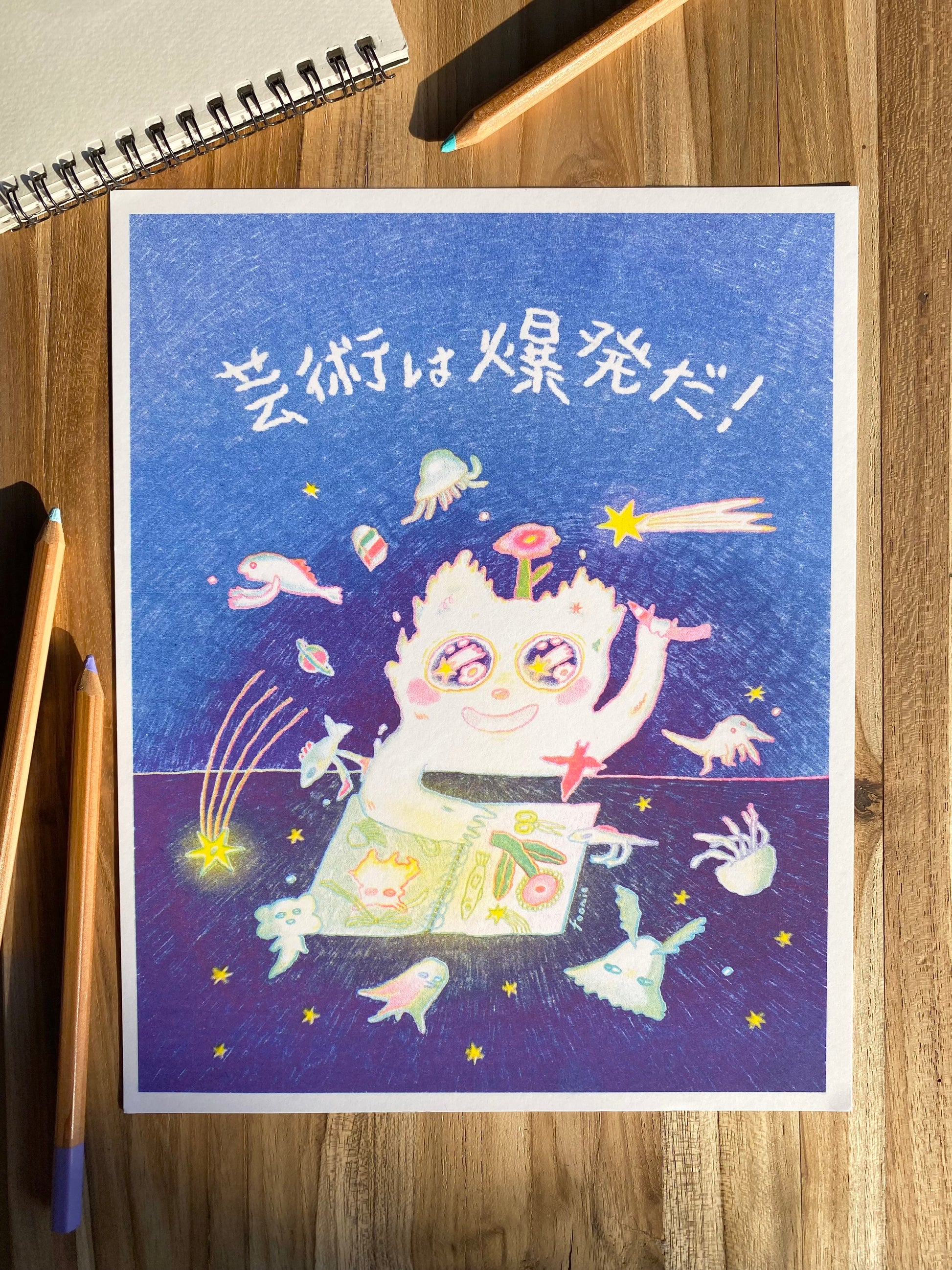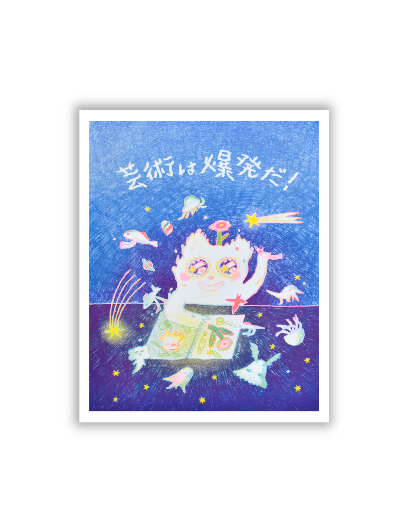 - Text: “芸術は爆発だ!” (“Art is an Explosion” in Japanese)